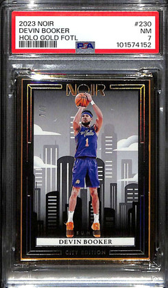 2023-24 Panini Noir FOTL Holo Gold 230 Devin Booker Metal City Edition 7/7 PSA 7